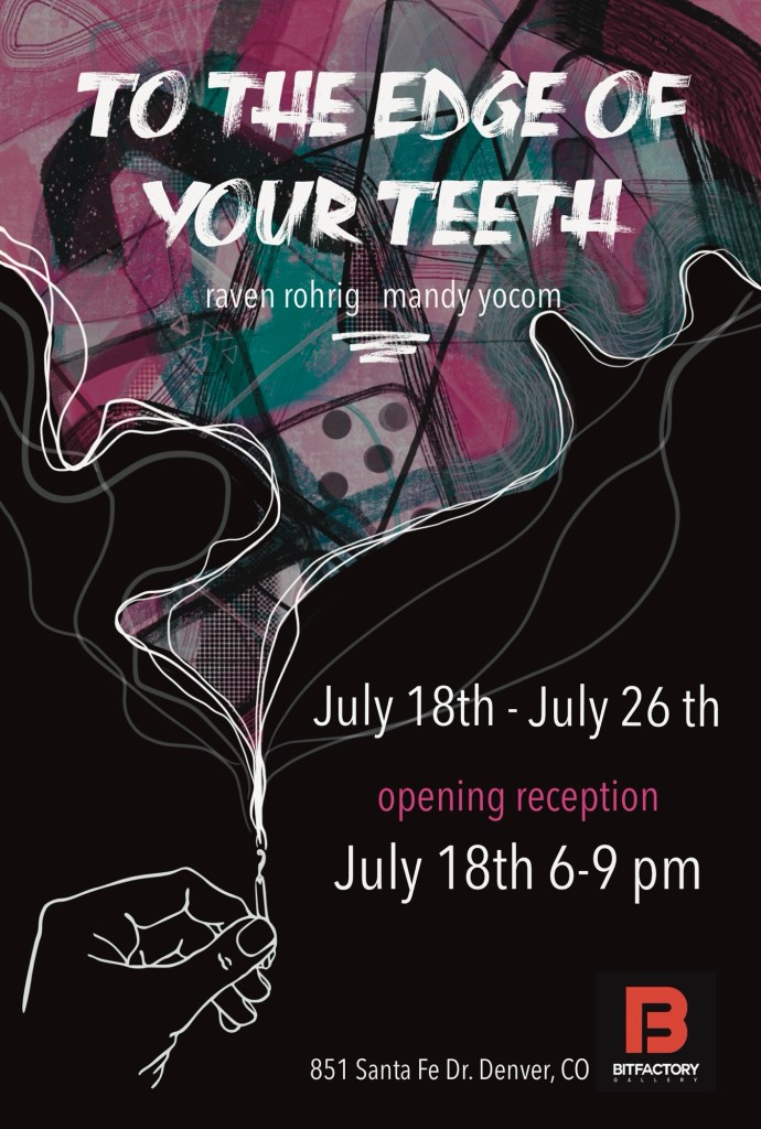 I invited my friend Mandy Yocom to join me in filling the gallery for our duo show, “To the Edge of Your Teeth.” I can say with confidence the work is exciting and worth seeing.