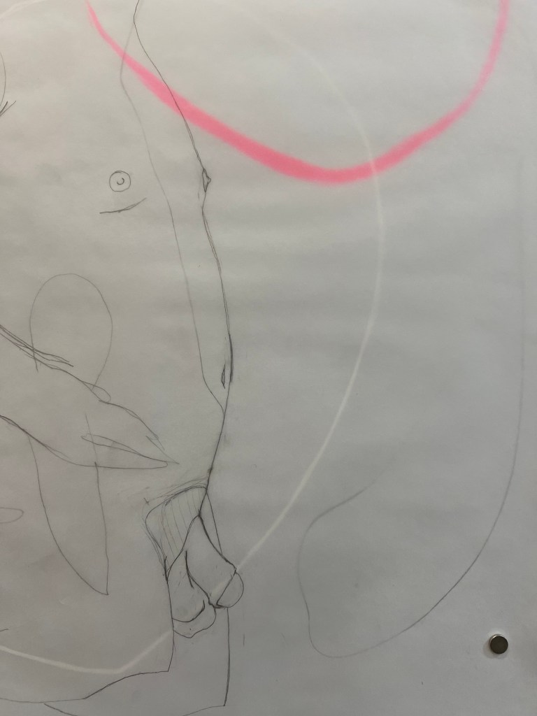 I’ve drawn a few pieces that focus on bodies with penises and I’ve sold them all! Many conversations have been had over why we don’t see these bodies in art as much as we do vulva bodies. There is a whole long racist and misogynistic story about the use of white, vulva/breasted bodies being the only bodies we see nude (you should look up Gorilla Girls) and I am sure this is not surprising. I do have some thoughts on a secondary reason we don’t see penis bodies: we’ve forgotten how beautiful they are. People love seeing a diversity of bodies in art; I will continue to draw them because these bodies are a feast to behold and deserve appreciation, too.