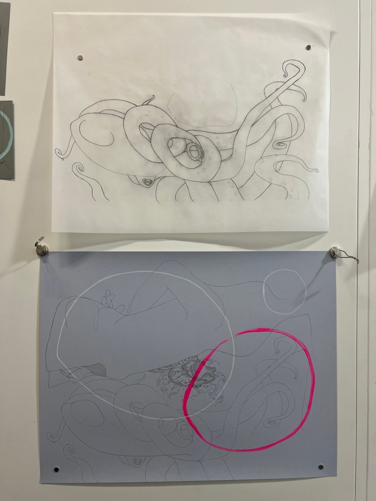 My first studio had a metal wall the length of the room. I was initially unsure how I could use the wall and it ended up revolutionizing the way I draw. My drawings up to that point were small enough to create flat on a table. But I wanted to go big AND I am anal about my paper being perfectly flat and clean which means I had to go vertical.
