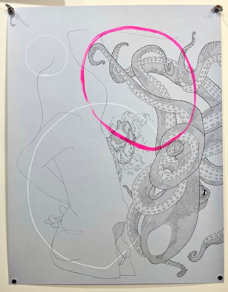 I’ve noticed over the years I have three subjects that continue to show up in nearly every drawing: bodies, hands, hearts.