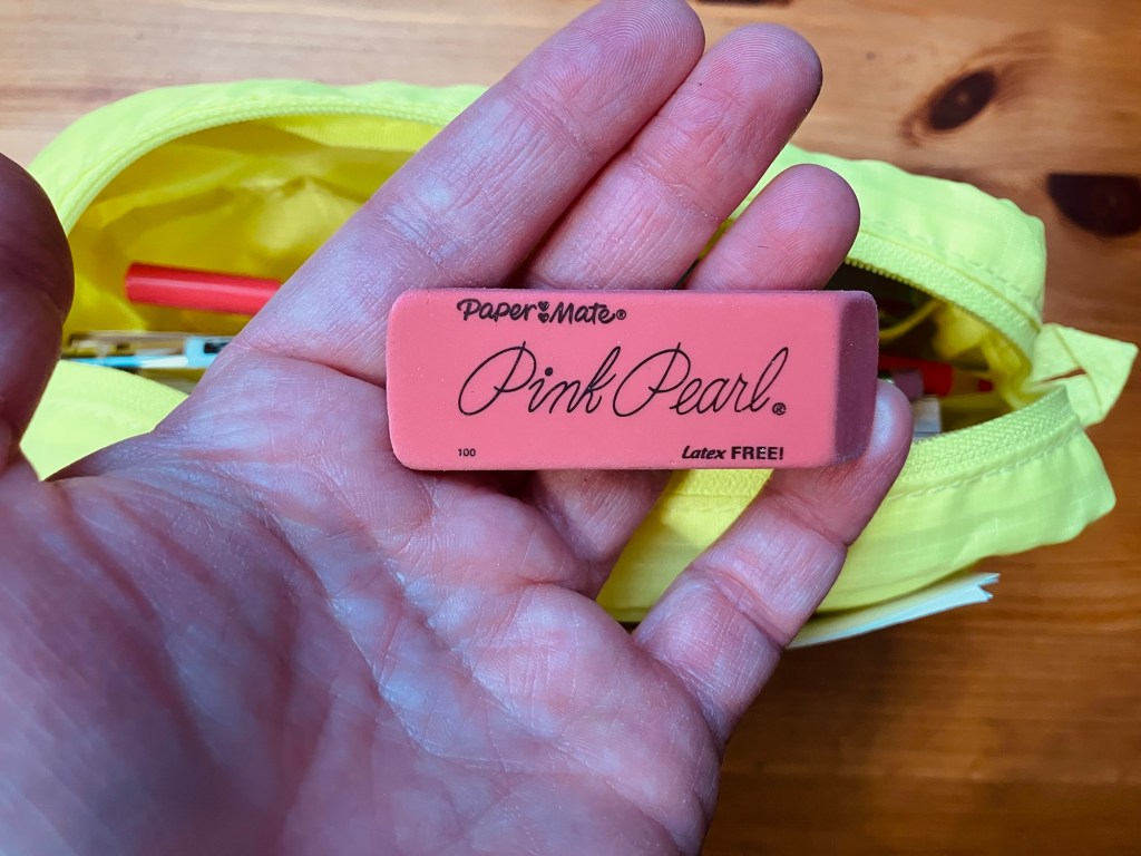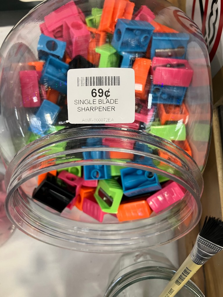 For my fellow perpetual teenagers: my sharpener AND the pink erasers cost $.69 😏