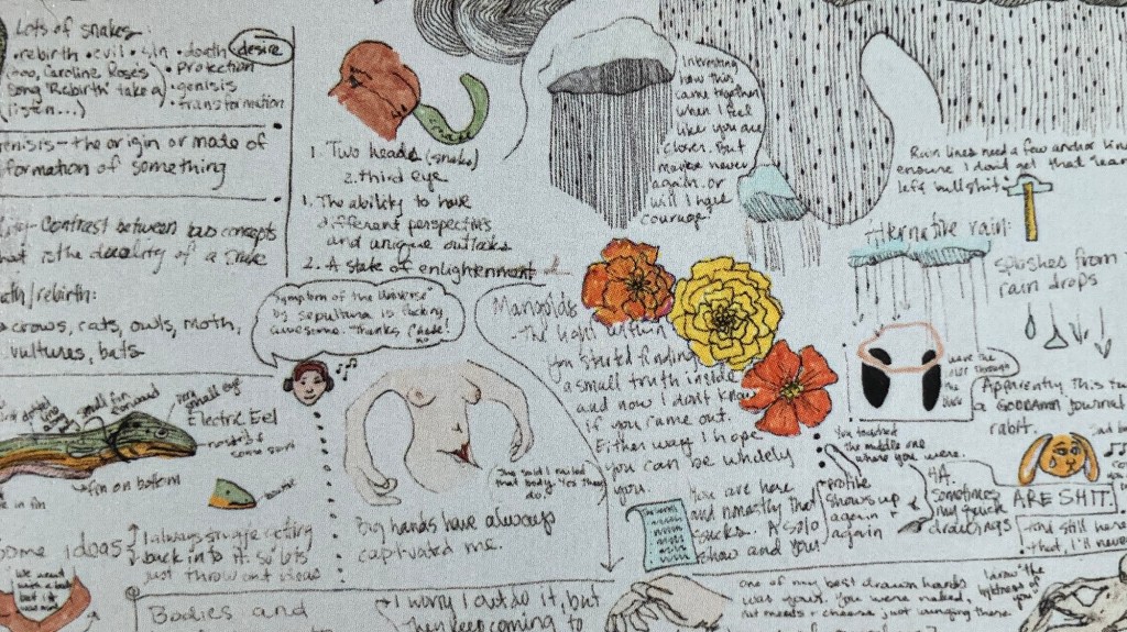 Most of the time I am chasing the feeling of never being a good enough artist. It is exhausting and a waste of my time, nonetheless, I feel this way often. However, there are moments that surprise me and I get a chance to see the amount of art I’ve made in my career or even just the last year or two. Today it was as simple as laying out my business cards, that have a fraction of my work on them, and seeing just how much art comes out of my brain.
