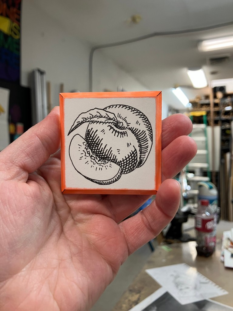 I have a fresh one off of today’s lunch break (it is sold already!) but it is sooooo cute 🥹 this small drawing is on 8 ply mat board so it has a deeper bevel. I love it: